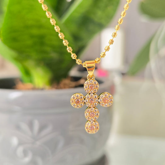 Cadena Cruz Cristal Rosa